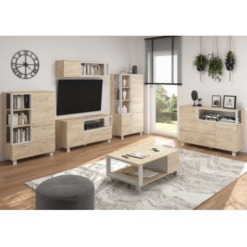 Set Mobila Living, alb, culoare lemn stejar, 320/205/47 cm