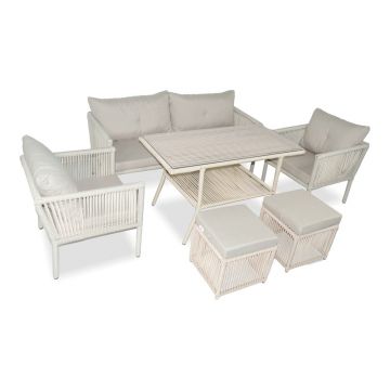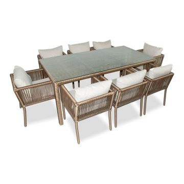 Set de dining pentru grădină gri din ratan artificial pentru șase persoane Vera 2 – Floriane Garden