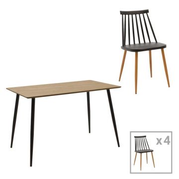 Set de 5 buc masa si scaune Julita-Cuba plastic PP-MDF culoare negru-sonoma 70x70x75 cm